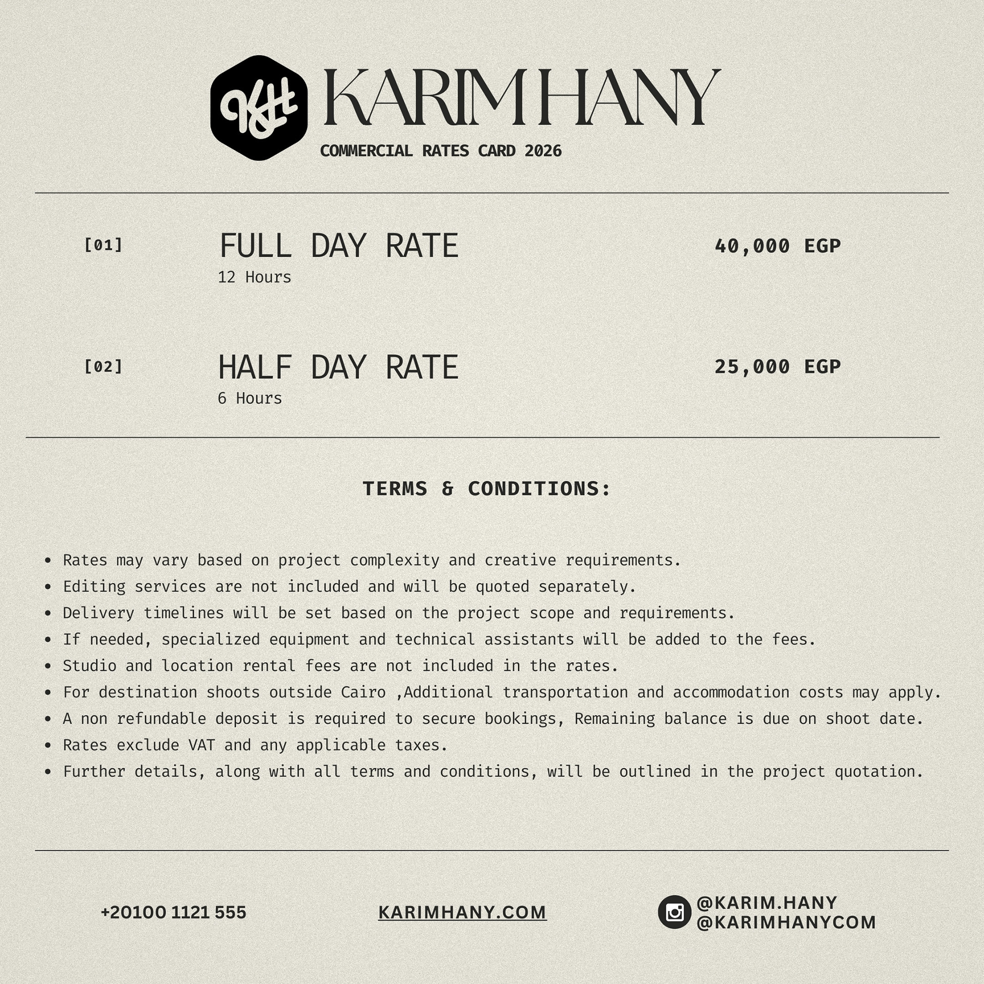 Commercial rate card